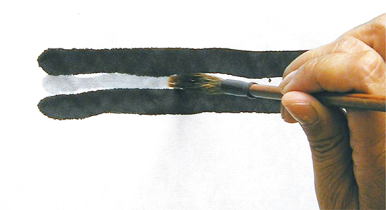 2本の線の隙間に水で線を引く。