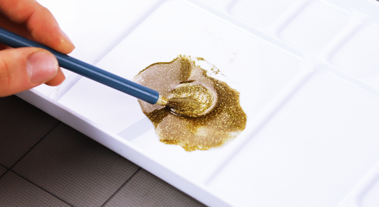 1. パレットに金粉とニスを出す