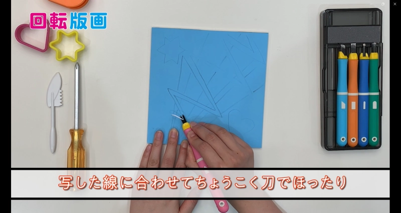 下書きが写せた板を、彫刻刀で彫っていきます!