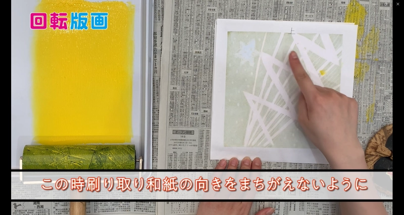 この時に、刷り取り和紙の向きを間違えないように、和紙の裏面の上部分に「上」と書いておきましょう★