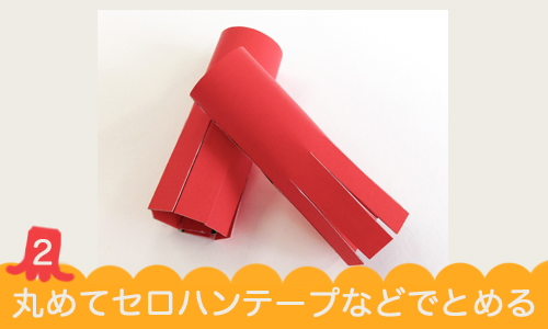 2.丸めて後ろをセロハンテープもしくはのりでとめます。
