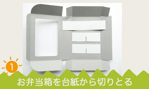 1.お弁当箱を台紙から切り取ります。(切りこみが入っているので、手で簡単に取れます。)