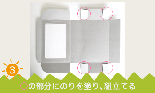 3.黄色の部分をのりではり、お弁当箱を組み立てます。