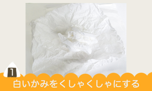 1.白いかみをくしゃくしゃにして中にティッシュ(4.5枚程度)を入れます。