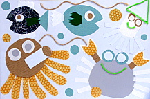 point 下絵は細かく描かず、画面いっぱいに大きく。 また、模様紙には鉛筆で下書きをせず、はさみで描くように のびのびとカットすれば、大きく見える元気な作品に仕上がります。