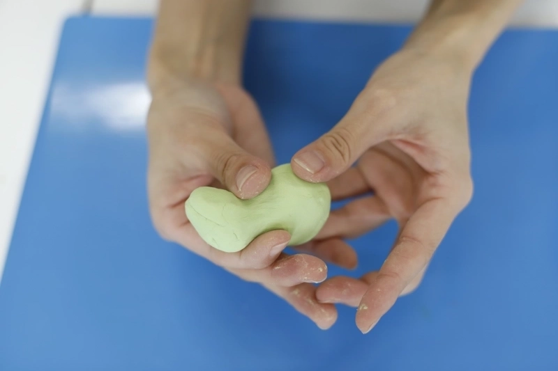 粘土が硬く感じる場合は、少量の水を足して硬さを調整してください。