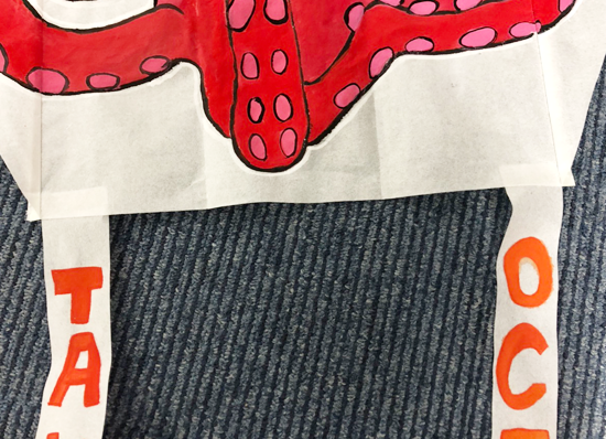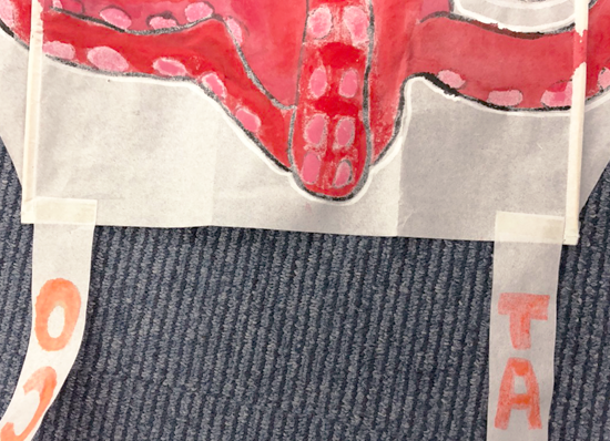 下書きが出来たら、たこ本体とシッポシートに絵の具等で着色していきます。 ※着色する際は下に新聞紙やビニール袋を敷いておくと良いでしょう。 また、着色をしていく際にはこまめに新聞紙やビニール袋を取り換えましょう。そのままだと新聞紙やビニール袋がくっついてしまいます。