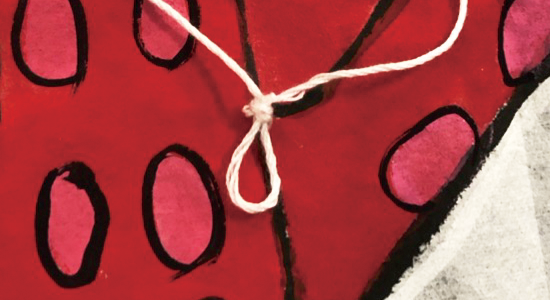糸を取り付けます。 たこ本体についていた糸とプラスチック糸巻きを結びます。(2回ほど)