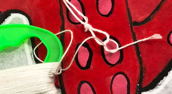 糸を結んだら、凧の完成です★ 外に行って飛ばしてみましょう!!
