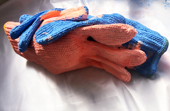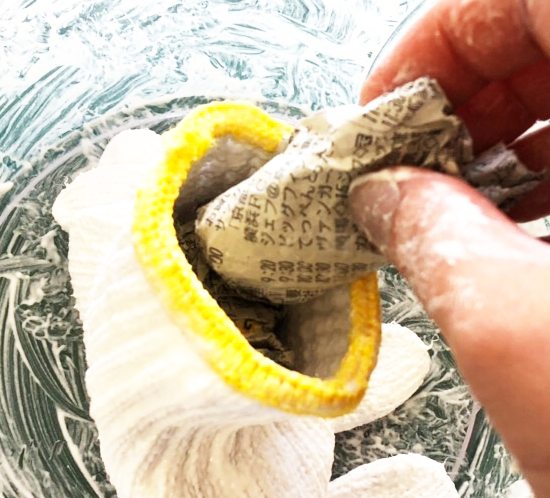 2. 軍手にとろりんを染み込ませる
