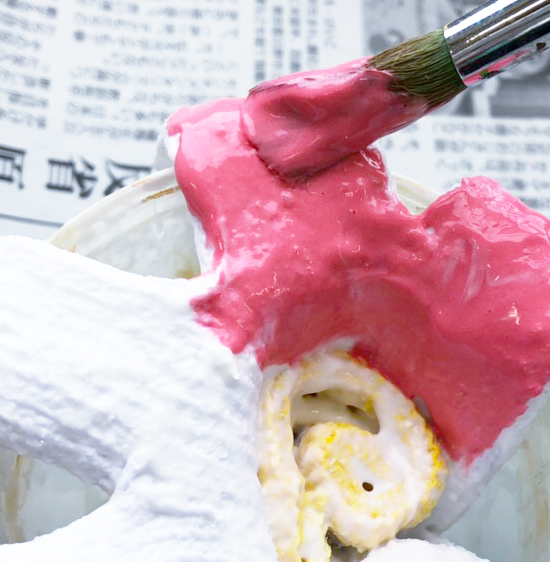 完成後に色を塗ることも可能です。 少し塗りにくいので広い面積に色を付けたい場合は1のあらかじめ着色したとろりんを使用する方法が簡単でオススメです!