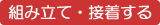 基本的には、木表(切断面で樹皮=辺材に近い側)が表面になるように組立、板を つなぎ合わせる場合は木表と木裏を交互に合わせる。 接着剤はほとんどの種類が使え、 ふつうは木工用接着材を使う。予めきれいにしておいた接着面に適量を均一につけ、 接着後、安定するまで少し力を入れて押さえておく。接着しにくいときは、糸や輪ゴム で長時間固定させるときもある。はみ出した接着剤は乾く前に拭き取っておく。