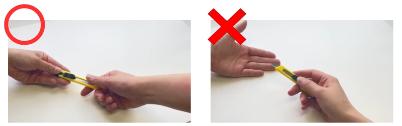 人に渡す時は、刃をしまってから、刃の方を持って渡しましょう。
