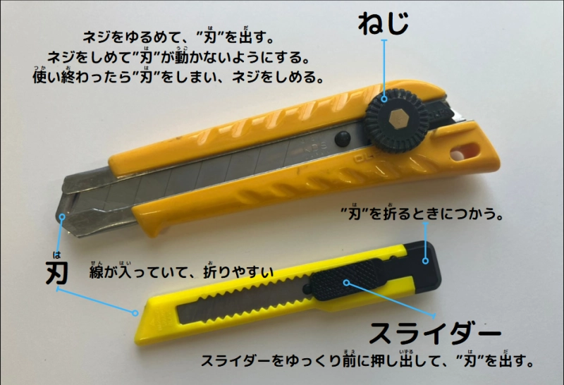 安全にカッターナイフを使いましょう!