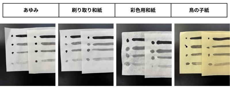 それぞれの和紙の、色のにじみ方の違いは?