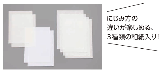 彩色用和紙(特殊加工和紙)だけ、ドーサ引きをしていないのでにじみが出ます。