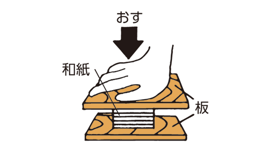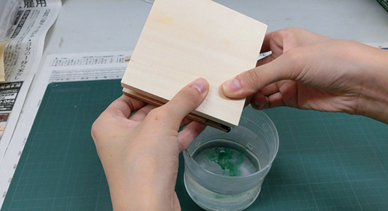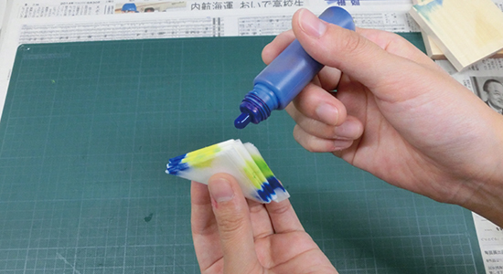 もう一度板と板の間にはさんで色を吸い込ませる。