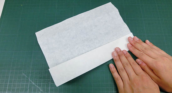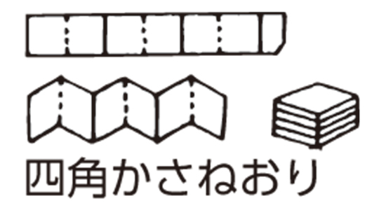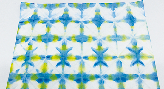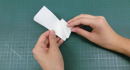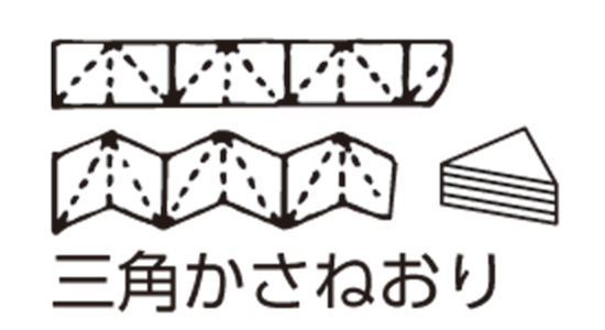 さらに折り重ねる。 ポイント 折り方で模様が変わるので、いろいろ試してみましょう。