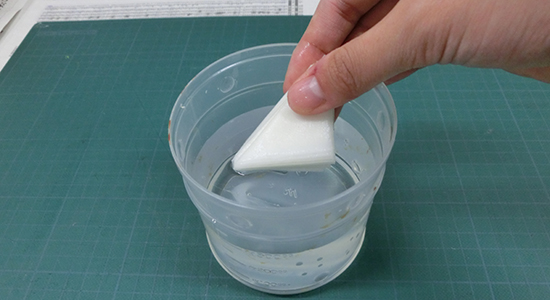 水溶液を作る。 ポイント 水溶液と水の割合は1:1 ※吸水しない素材の場合の比率は、水溶液:水=2:1