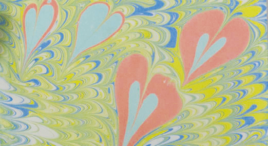 和紙(紙)は、610年頃に朝鮮から製紙の方法が渡ってきた紙の製法を元に作られました。 写経に使用する紙を大量に確保するためにこの技術が改良され、日本に元来あった楮(こうぞ)を使った楮紙が多く作られるようになりました。 マーブリングは主に西洋で使用されている技法ですが、東洋の墨流しという伝統的な技法を元にされたと伝えられています。 マーブリング技法を使ってできた「マーブル紙」は、書籍の装飾用紙として使用されるほか、はがきや封筒などにも使用されています。