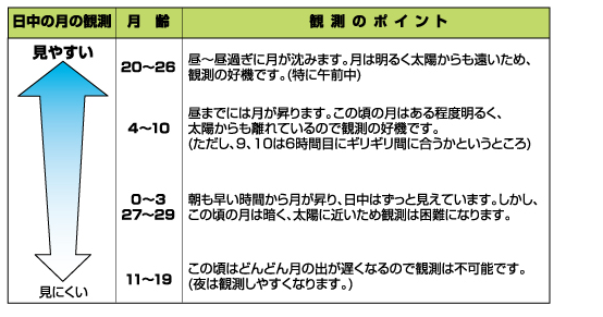 ・月は太陽の光を反射して光っており、太陽の光があたっている側が常に明るく見える。 ・月の満ち欠けは、日によって月と太陽の位置関係が変わることによっておこる見かけ上の現象である。