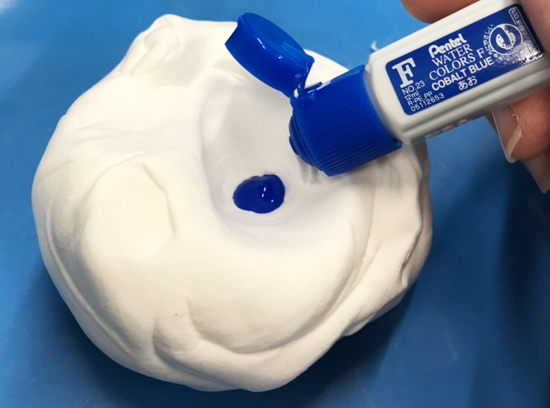 4. 粘土に絵の具を入れる