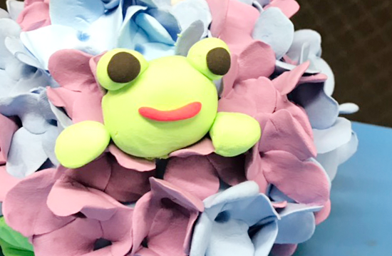 花びらをたくさんつけるとあじさいの完成です! ぜひお家にお気に入りのふうりんを飾ってくださいね!