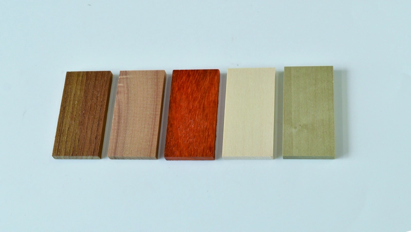 様々な色の木を55×28(㎜)にカットし、5枚セットにしています♪