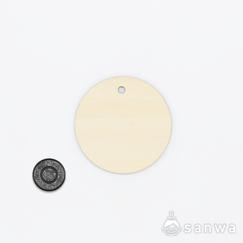 『木のガーランドシリーズ』と『木のネックレスシリーズ』と『木のバッジ7cmシリーズ』と『木のマグネット7cmシリーズ』は、絵の具やマーカーなど、お好みの画材で着色して、手軽にオリジナル作品が作れるキットです。